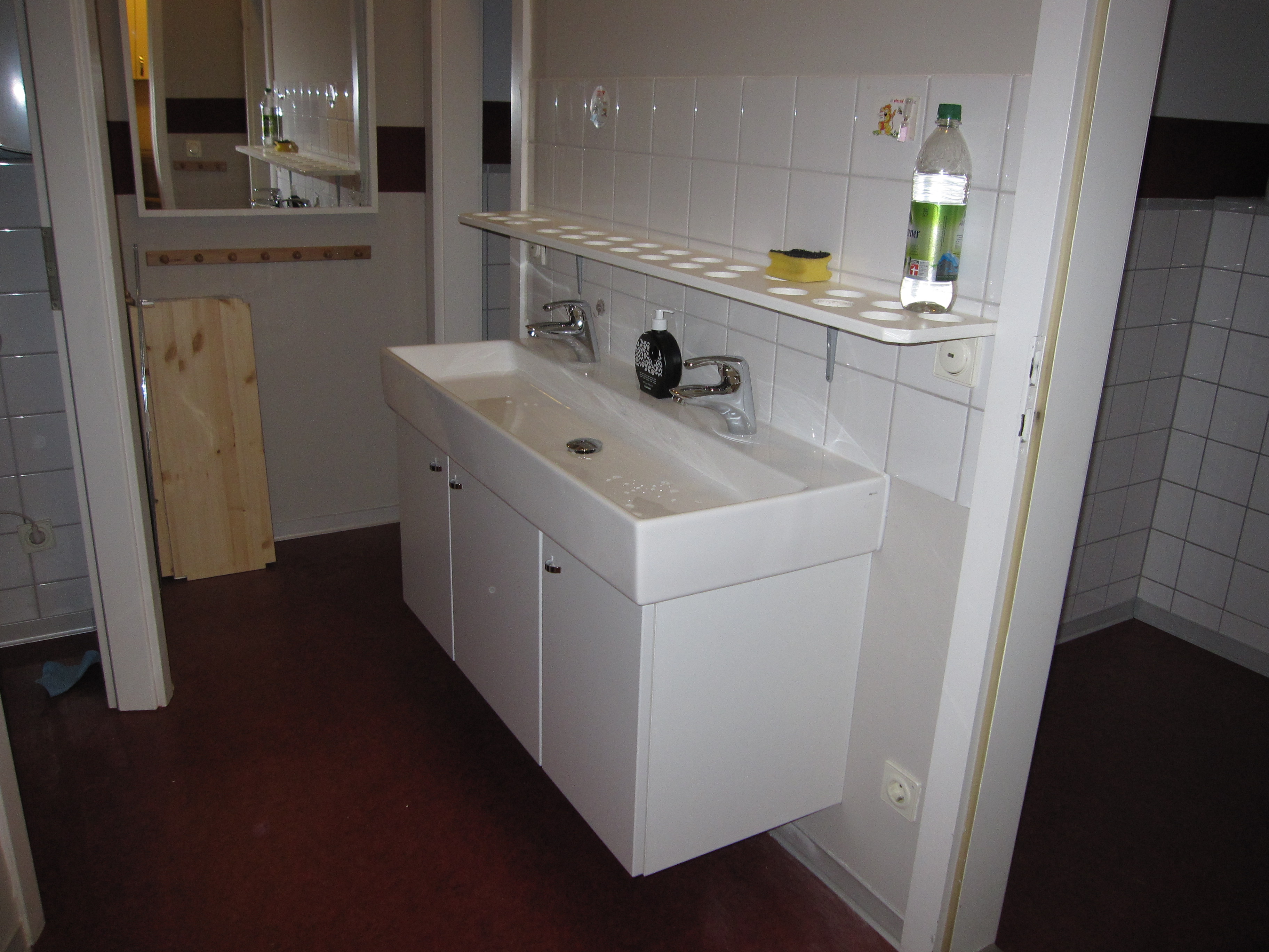 Kinderhort Waschtisch, Essecke, Lampen, Küche.